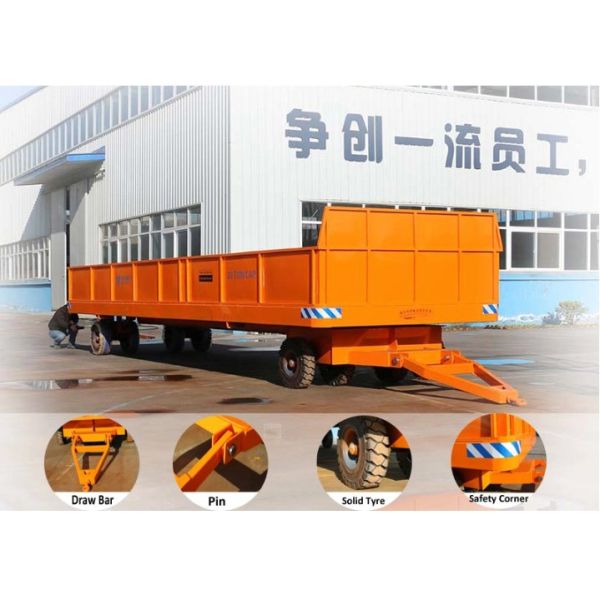Batch transportation in warehouse yards: In logistics warehouses and port yards, after connecting with tractors, it can efficiently complete the fixed-point transportation of batches of building materials, packaged goods or containers from the storage area to the loading and unloading area, improving the throughput efficiency.